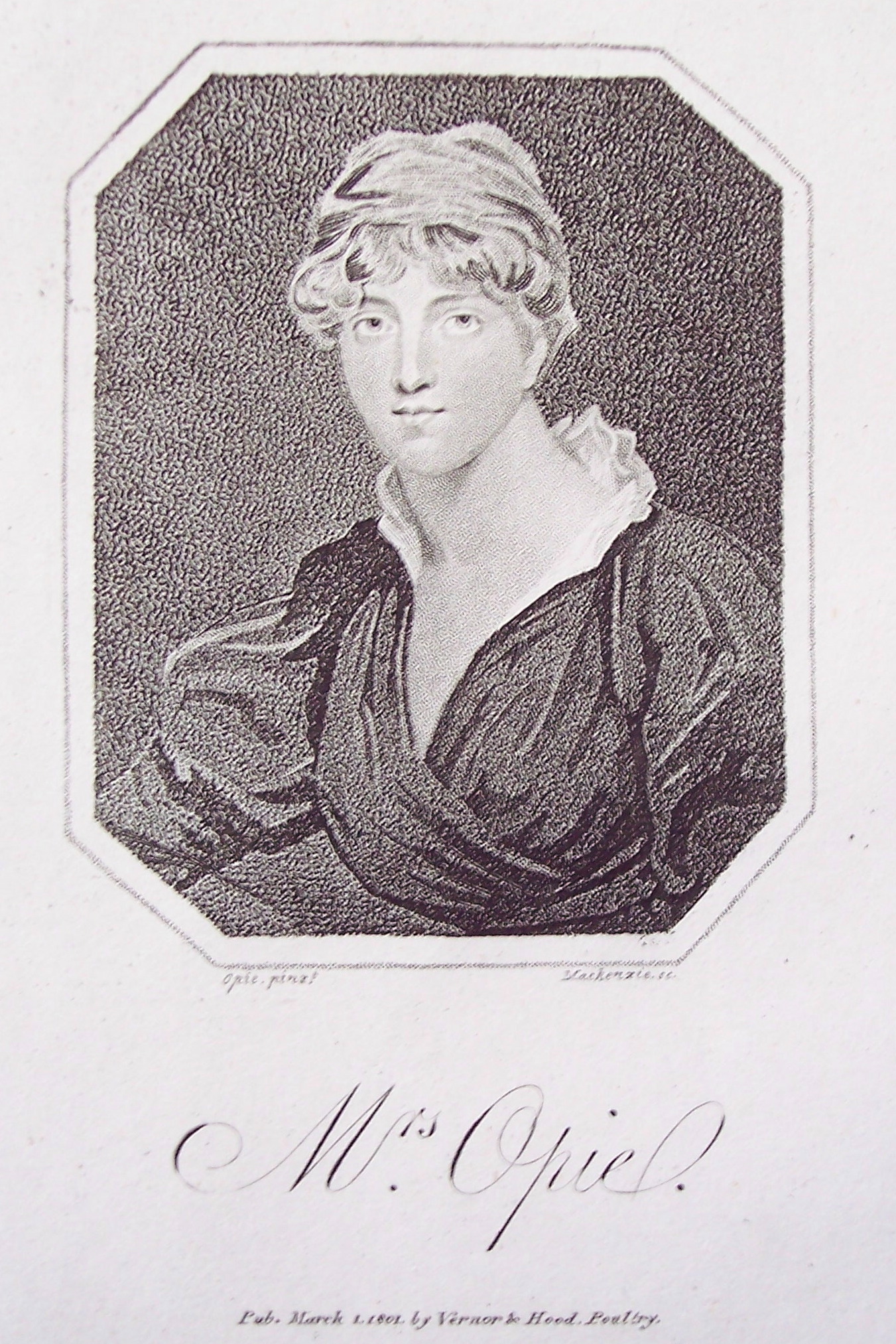 1801: Engraved portrait (Mackenzie after John Opie) with “Memoirs of Mrs. Opie” appears in The Lady’s Monthly Museum (March)
