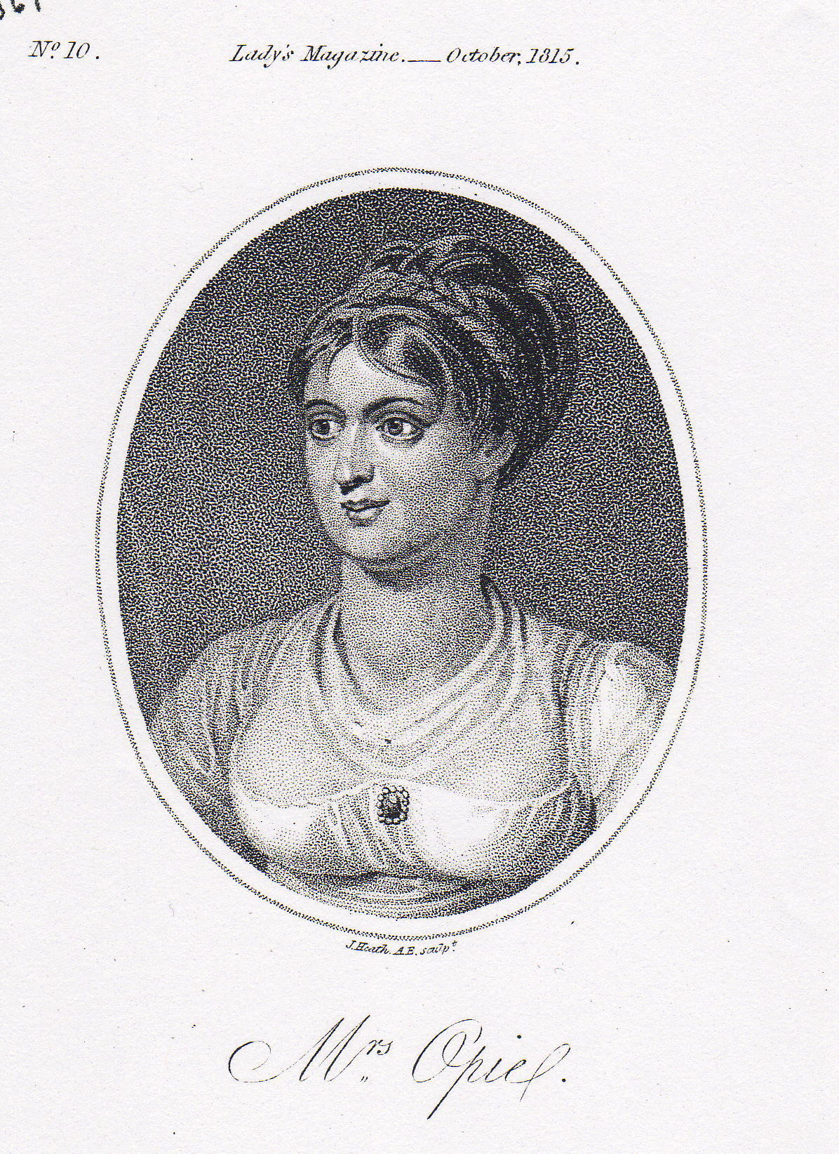 1815: Engraved portrait (Heath after John Opie) published in Lady’s Magazine (October)